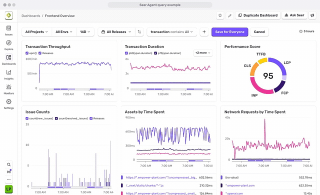 You can use it to answer open-ended questions about your telemetry and app, and accelerate debugging in situations where Sentry may not have already identified an issue (e.g. incident, customer bug report, metric trending in the wrong direction).