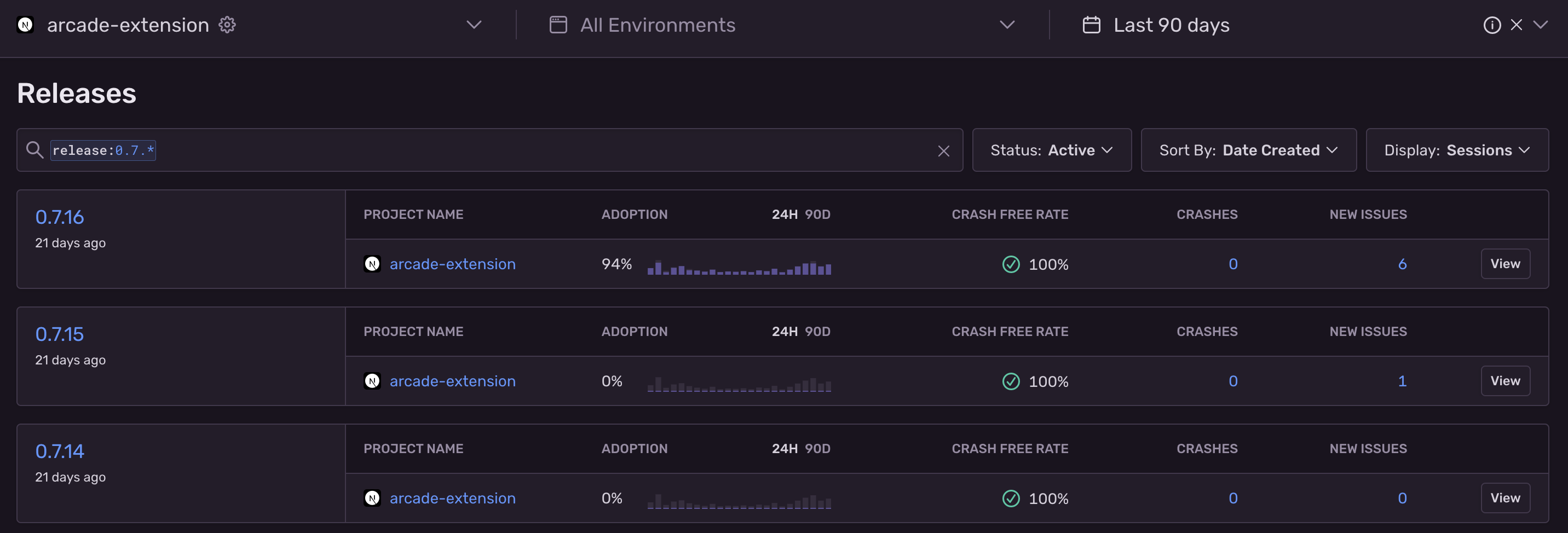 To support their growing audience, Arcade is focused on achieving 100% crash-free sessions with every release. In the event that crash free rate drops, Rich’s team is able to rollback the release in seconds with Sentry and Vercel.