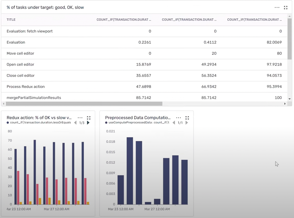 Another key area they keep an eye on is preprocessed data computation. If this process is slow, everything on the frontend will be slow so they need real-time insights into the proportion of requests taking longer than they should.