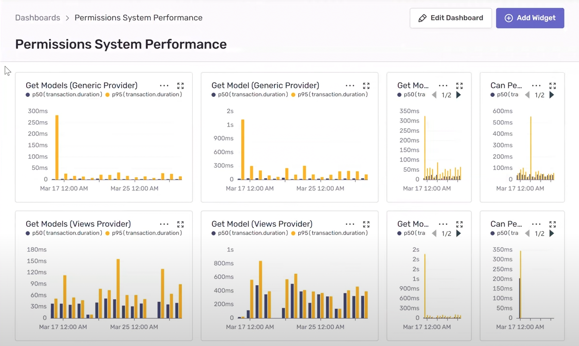 Take permissions for example. Andrew’s team has been rethinking their approach to permissions and wrote a whole new system. They needed to get a sense of how it was performing since it's used in almost every request to the backend and could easily become a bottleneck for subsequent requests.