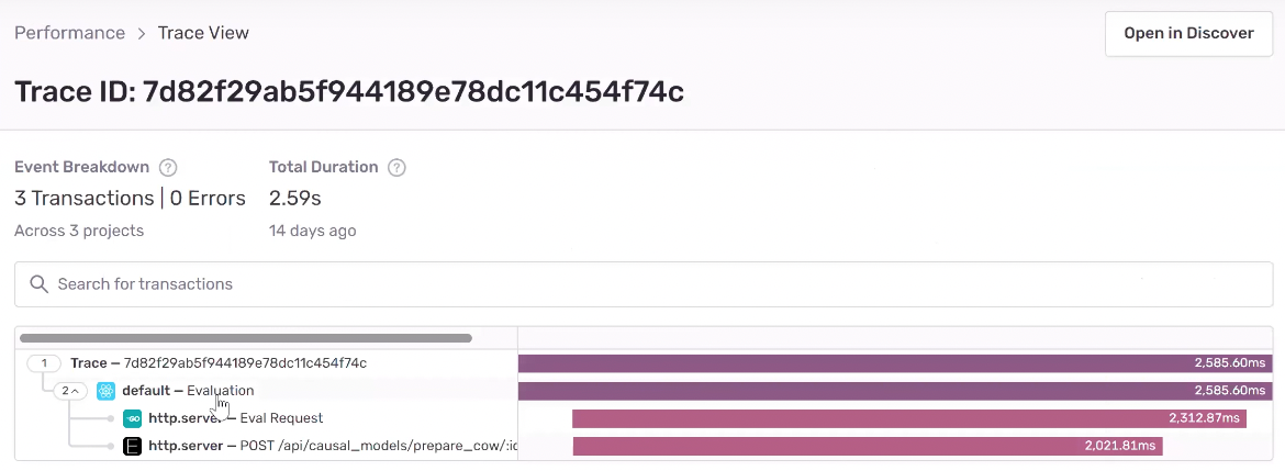 On the backend, Andrew’s team recently hit a problem where a user’s model was taking longer than expected to evaluate and they couldn’t easily replicate the state of the data locally without considerable effort. With Sentry they were able to identify the slow transaction and see which phase of the dependency graph generation was causing the lag: