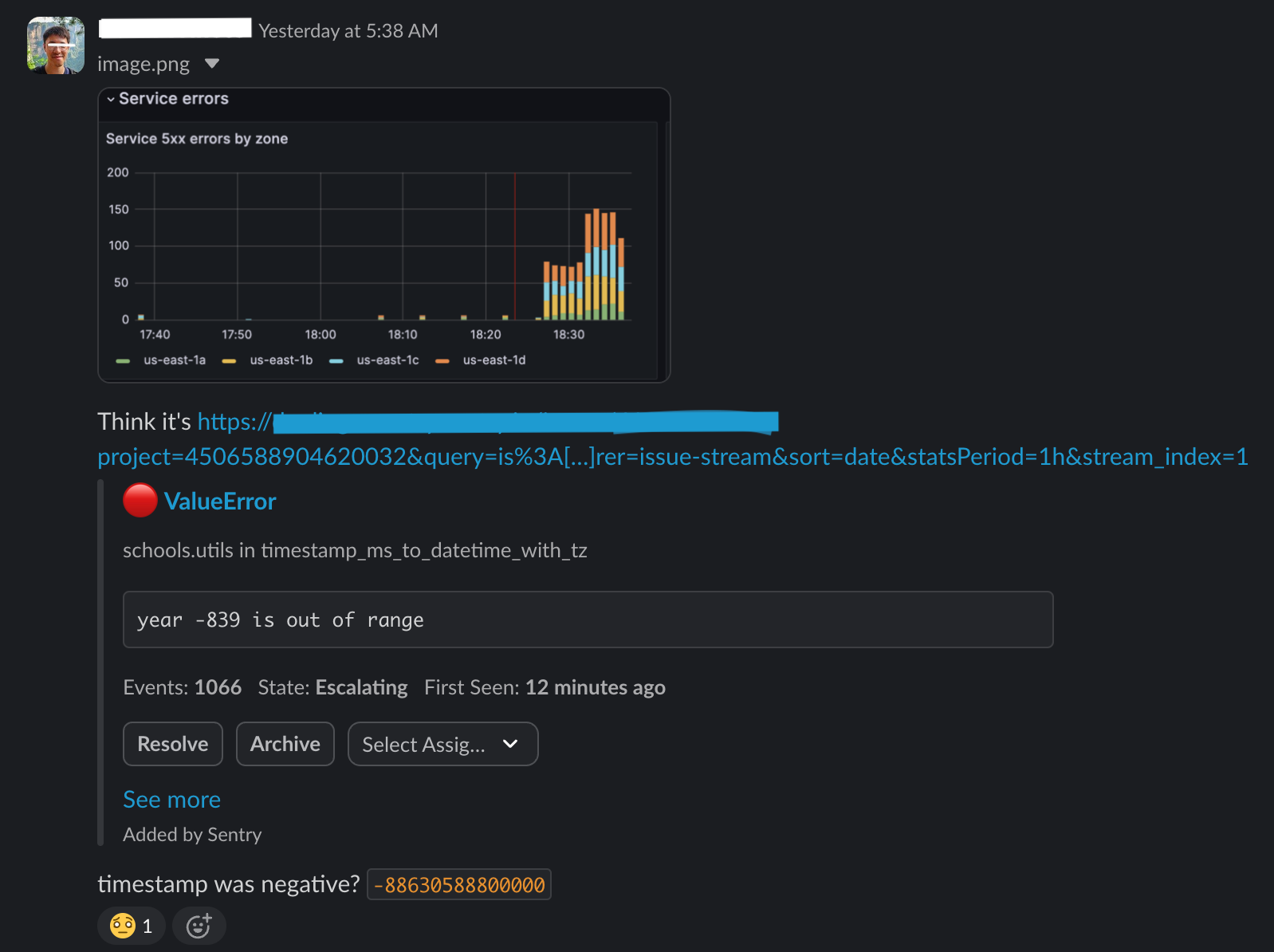 After getting tagged in Slack for a spike in errors, an engineer initially suspected an issue with how