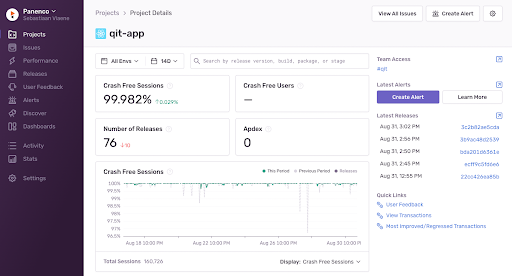 Panenco chose QIT online as the first product test case for both error and performance monitoring. With processes defined, teams had access to automatic error and exception reports, alerts on crucial performance issues impacting user experience, and could quickly investigate and resolve them before they caused any “misery.”