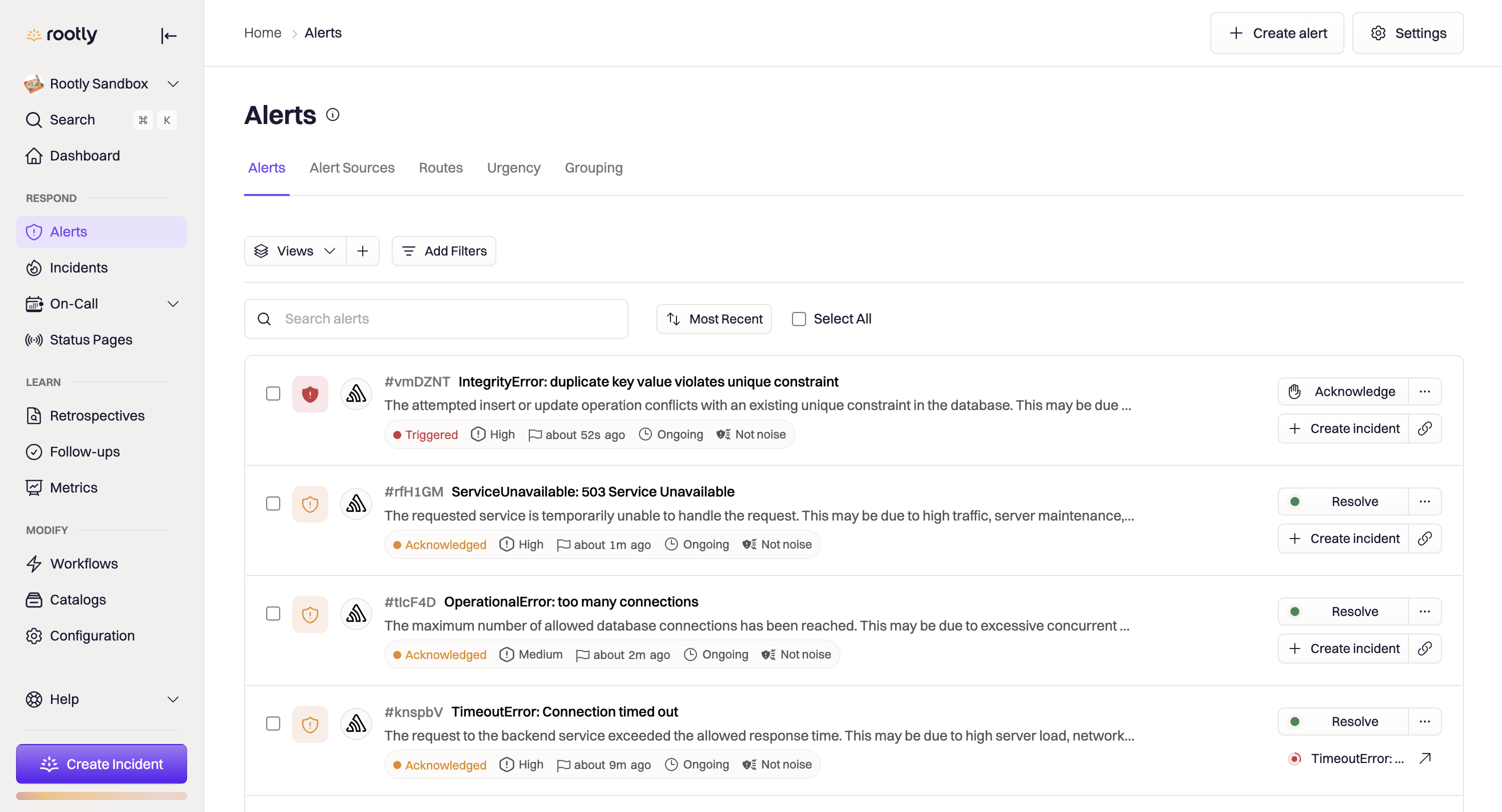 Sentry is one of the most popular alert sources in Rootly. Sentry Issues is conveniently integrated with the Rootly incident management platform, allowing the creation of incidents from Sentry alerts automatically, just like the Rootly development team set up for themselves.