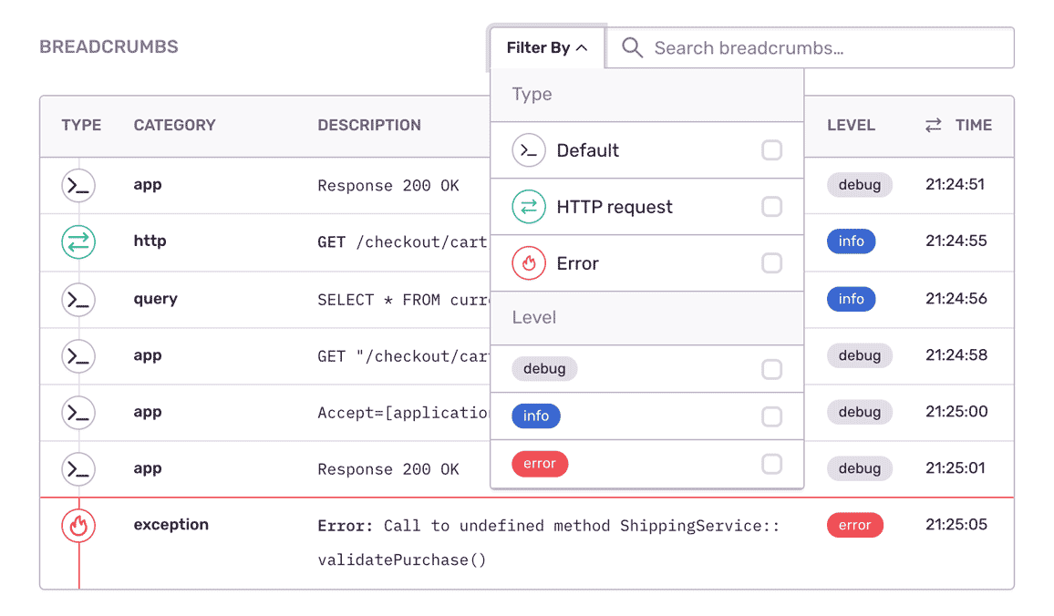 Aggregate errors by factors like request details, user ID, and app version to see what's new, a priority, or a trend.