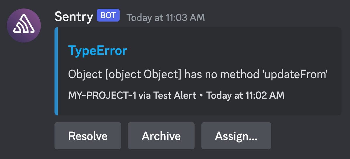 Manage your Sentry issues in Discord by assigning, resolving, and archiving issue alerts directly in your configured Discord channel. Changes will be automatically synced back to Sentry, ensuring an efficient, organized workflow.