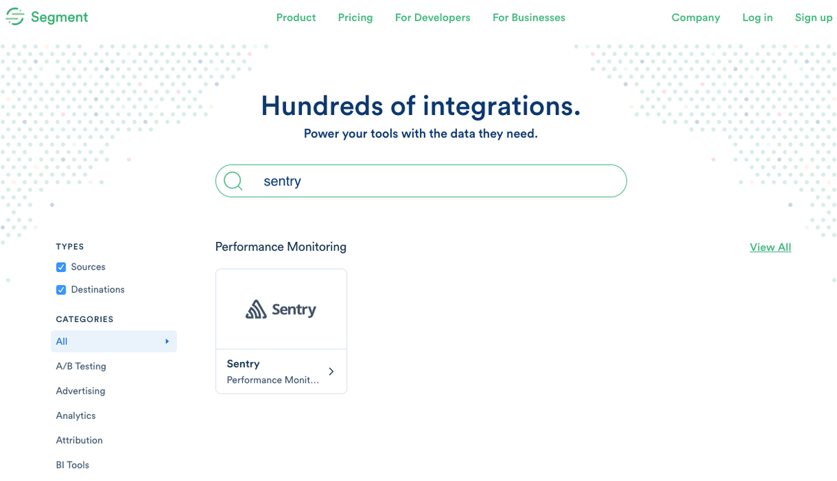 Segment can help collect all your client-side data for Sentry automatically without the need to install Sentry's client library. Enable Sentry in your Segment settings to asynchronously load Raven.js onto your page without touching the code in your application.