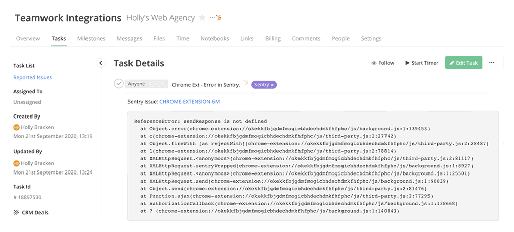 Teamwork + Sentry Integration
