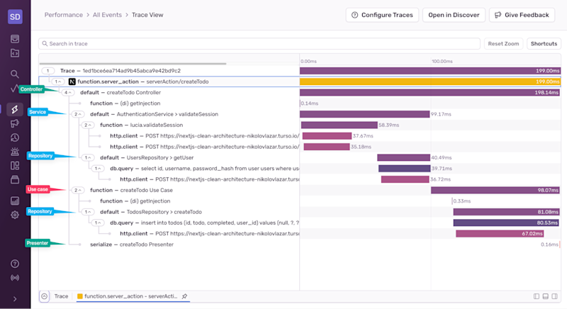 A tool centered around debuggability, like Sentry, will help you resolve your issues even faster. While you’re exploring any span along the trace, Sentry provides context that is relevant for developers to not only pinpoint where the issue is coming from but also determine whether this particular issue should be prioritized over others.